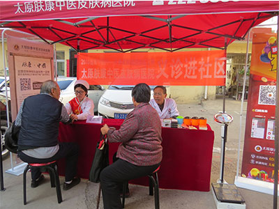当天早上8点30分左右,记者来到现场看到,已有居民早早过来等候看诊。在义诊检查中,太原肤康医院的医务人员为每一个前来参加义诊的居民进行了认真的检查,并耐心细致地为居民分析、讲解。本次社区义诊活动服务内容包括免费为社区居民进行血压测量,分发大量健康传单,对居民进行广泛的皮肤健康知识宣传和简单的健康咨询。