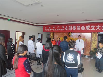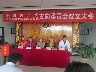 2016年11月30日下午,在桥东街道工委副书记赵喜梅、党办主任路丽琴、迎宾社区主任兼书记闫莉及副书记刘家爱的共同见证下,中共太原肤康中医皮肤病医院支部委员会正式成立。