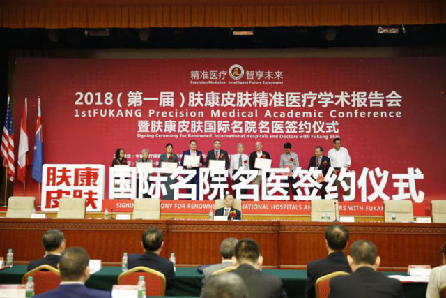以“准确医疗 智享未来”为主题的“2018(第一届)肤康皮肤准确医疗学术报告会暨肤康皮肤国际名院医生签约仪式”于5月19日在北京全国人大会议中心隆重举行。