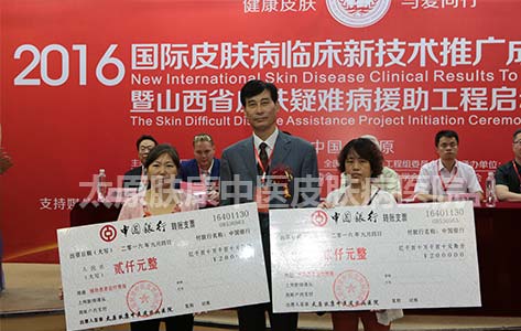 (太原肤康院长为贫困患者颁发救助金)